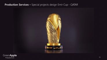 In 2021 Green Apple Production sal, produced, supervised, and broadcasted the FIFA Arab Cup and event organised by the FIFA football federation to the world. Supplying all technical and crew support for the event for over 21 days with live broadcast and television studios.